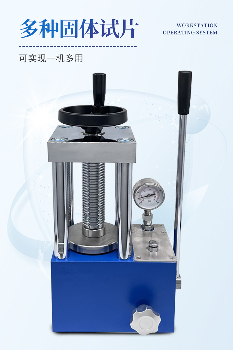 手動壓片機該機采用一體式結構,手動液壓驅動,兩立柱設計,具有造型美觀、操作方便、體積小巧、工作空間大等優(yōu)點,非常適合拖進手套箱內使用;配上特定模具,可對各種粉末材料壓制成型,廣泛應用于科研、教學、檢測、催化、制藥等各個領域。
