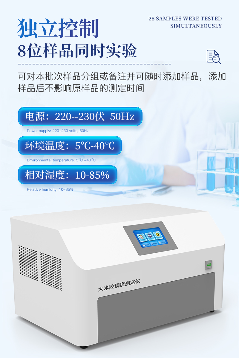 【產(chǎn)品簡介】1、用途:適用于糧油檢測大米膠稠度的測量2、工作條件:2.1電源:220--230伏, 50Hz;環(huán)境溫度:5℃-40℃;相對濕度:10-85%3、技術(shù)指標(biāo)要求★全樣品位:8位,★樣品位可獨(dú)立控制:每···